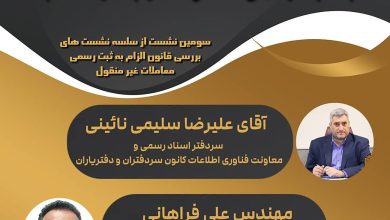 سومین نشست از سلسله نشستهای بررسی قانون الزام به ثبت رسمی معاملات غیرمنقول در سالن اجتماعات زنده یاد عظیمیان در…
